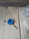 ラメ入りの黒×ブルーのレース糸で編んで制作した、お花のヘアピンです。