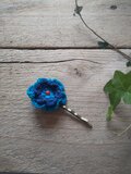 ブルーカラー×紺色のレース糸で編んで制作した、お花のヘアピンです。