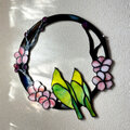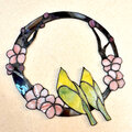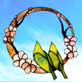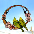 春の訪れを告げる桜の花と可愛いらしいメジロをモチーフにしたステンドグラスが完成しました。