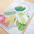水彩画で描いたみずみずしい野菜をアート作品のような美しいデザインの便箋に仕上げました。上質紙に両面カラーで印刷した便箋です。