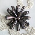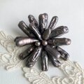 珍しいチャコールグレーの淡水真珠をたっぷりと使った お花のようなブローチ