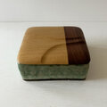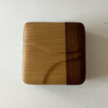 合わせた蓋は、ニセアカシヤの明るい色と濃色のウォールナットのツートンカラーがコントラストになっています。表面に浅く模様も掘り込んでいて、表情に変化を与えています。