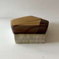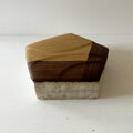 合わせた蓋は、ニセアカシヤの明るい色と濃色のウォールナットのツートンカラーがコントラストになっています。表面に浅く模様も掘り込んでいて、表情に変化を与えています。