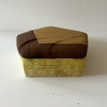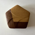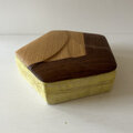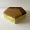 合わせた蓋は、ニセアカシヤの明るい色と濃色のウォールナットのツートンカラーがコントラストになっています。表面に浅く模様も掘り込んでいて、表情に変化を与えています。