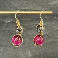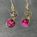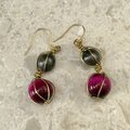 珠環珠とローズタイガーアイ(染石)を組み合わせた小ぶりなピアスになります