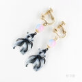 【金魚イヤリング】 ピアス 和風 黒 ブラック