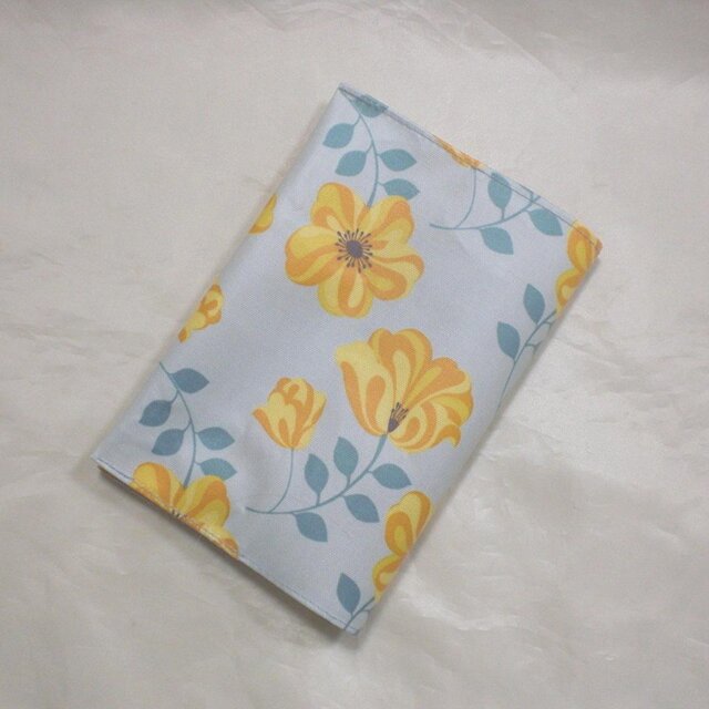 ブックカバー(文庫)/全力全開!(ブルーグレー+黄花)