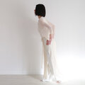 手編み機でゆっくりと編んだシルク・ニットには、均一さと対極をなす独特の風合いがあります。