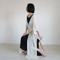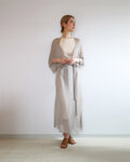 ボタンを留めずに紐を結ぶと、ローブのようなゆるい感じに。