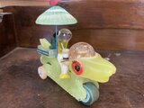 ドリンクしながら景色を楽しむヘビくんはお客さんです。運転手はカプセルの中のゴールドヘビ君です。荷台は外せ、テレビになります。猫のぷーちゃんがゆらゆらしながらテレビを眺めます。