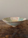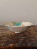 3色の釉薬を掛けて作られた飯椀です。釉薬のグラデーションがとても綺麗です。