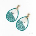 【波模様の和風ピアス ブルーグリーン】 イヤリング 青海波 青緑 プレゼント ラッピング プチギフト