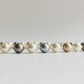 こちらはガラス素材の原玉に、オリジナルパール塗料にて何層にも渡り重ね塗りを施した日本製ガラスパールネックレスになります。パールカラーはきめ細かい質感と抑え目な艶感の複数のペールトーンカラーパールをランダムに使用。パールの間1つ1つ丁寧に結び目を加えたオールノット加工にて仕上げました。パールサイズは直径約8mm、長さは標準的なプリンセスサイズの全長約42cmに。クラスプにはラインストーンを1粒付けた差し込み式を使用。ちょっとしたお出かけや普段使いにと気軽にお使い頂けるタイプになっております。