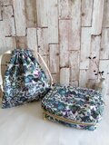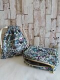 人気のリバティOrchard(ブルー)で作ったかわいいポーチと巾着です。