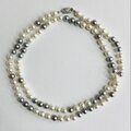 ガラスmixパール2wayオールノットロングネックレス/8mm約90cm/ホワイトxグレーmix/made in japan