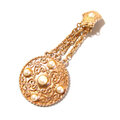 Vintage Gold Tone Oriental Design Big Drop Earring