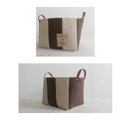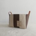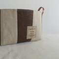 キナリのリネン帆布にブラウンのリネン生地をストライプにパッチワークして、スエード調のタグをポイントにした、本革持ち手の小物入れです。