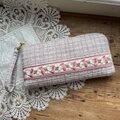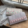 華やかなインド刺繍リボンとピンク系のツイード生地を使用して、長財布を作りました。