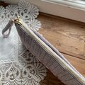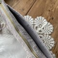 本体に使用したツイード生地は、ピンク〜パープル系の織り糸。所々にシルバーのラメ糸で、キラキラ光って見えます。