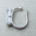 極めて透明度の高い氷の柱のような、原石のユニークな存在感をお楽しみ下さい*煌めきの強いパキスタン産アクアマリン原石のイヤーカフ。透明度が高い石ほど裏面への差し込みや接着では正面からその加工痕が見えてしまうためそれぞれに合わせた石枠を製作しております*耳上部の薄い部分に差し入れ厚みのある耳たぶ付近まで下ろして着ける脱落し難いタイプ、本体はアンティーク調マット仕上げ*通常、黒化遅延処理を施しますが銀そのものの変化をお好みの場合は処理不要とお申し付けください*黒化防止ロジウム(最終画像下段色味参照)やK14、K18、K18luna pinkコーティングご希望の場合は承ります(オプション800円)
