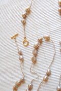 ゴールドのラメ糸でゴールドの淡水パールを編み込みました。