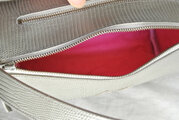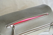 裏側にはファスナーポケット付きです。裏地はピンクです。