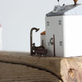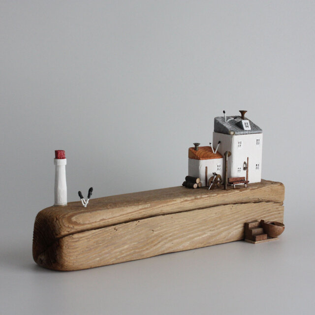 先ほど受け取りました。 流木の風合い、カモメ、岬の先にある白い壁の一軒家…ノスタルジーに誘われ.風や波音が静かに聴こえてきそうな雰囲気のある作品です。早速、リビングの棚に飾りました。 ありがとうございました!