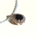 ブラックスピネルの周りをホワイトトパーズが取り囲んだ、華やかなペンダントトップです。