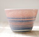 こちらの器には赤と紺の顔料を使用して色付けした三色の陶土を使用しています。