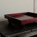 ・縁と盆面の繋ぎ目に表面の捲れ・木地と漆の収縮差によって生じる漆ビビ、1辺に僅かな隙間など生じておりますがこの手の盆にはよく見られれる現象で、しっかりとした造りなので普通のご使用には問題ございません。