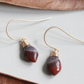 深みのある赤茶に入り組んだレース模様が浮かぶ、クレイジーレースジャスパーのピアス。