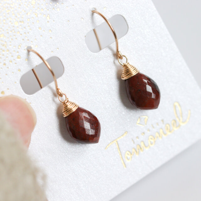 14kgf|こっくりブラウンレッド|クレイジーレースジャスパーの天然石ピアス
