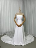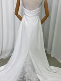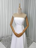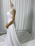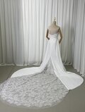フランス風 ウェディングドレス ベアトップ 細見えシルエット 華やかなトレーン 流れる透け花レース 結婚式