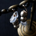 カットされていない採掘されたままのパキスタン産ダブルポイントクリスタル(※)の原石を使ったピアスです。ご好評いただいているこちらのシリーズ、さまざまな色形をもつ石の中からニュアンスのあうピースをチョイスし、世界にひとつだけのピアスをつくっています。