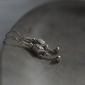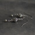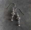 植物のような模様のついたひし形のバリシルバービーズと丸いカレンシルバービーズが揺れるピアス(イヤリング)です。