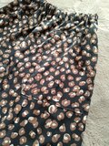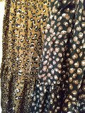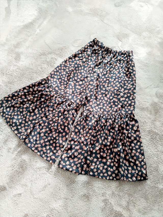 テロん素材のレオパード柄ギャザーガウチョパンツ(黒)