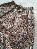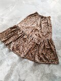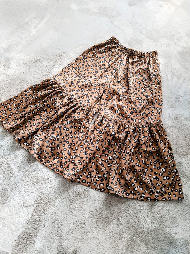 テロん素材のレオパード柄ギャザーガウチョパンツ(茶)