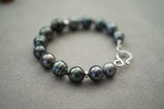 1粒でも充分主役になる粒をブラックのシルク糸で繋げ、オンリーワンのボリュームブレスレットに仕上げました!