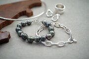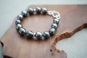南洋パール、タヒチパールの黒蝶貝バロックを贅沢にミックスして作ったボリュームブレスレット。
