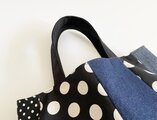 【手提げ】デニムパッチワークバッグ ドット モノトーン A4