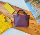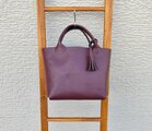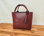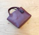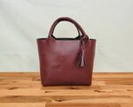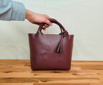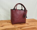 【姫路レザー】手縫いのミニトートバッグ(コンパクト/シンプル/メンズ/レディース/ミニバッグ/軽い)ボルドー