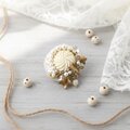 クリスタルガラスやパールビーズなど、ホワイト系のパーツでまとめ、仕上げにアイビーの蔦を這わせました。