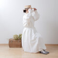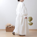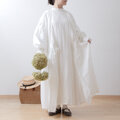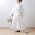 まだ肌寒い時期には、タックフリル衿デザインのワンピースにライトコート風にレイヤードするスタイリングも◎