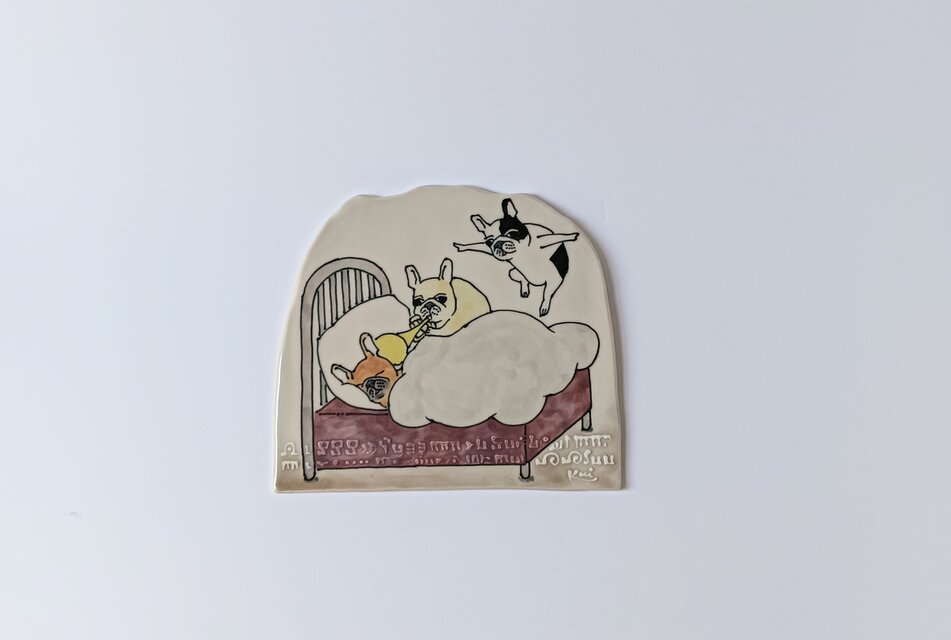プレートに絵付けし、焼成。