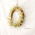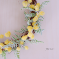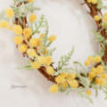 細いひげづるのリース土台にミモザとグリーンを少しずつ付けましたアーティフィシャルフラワーリースです。