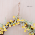 とても軽く、小さいリースですが、ミモザの黄色が華やかで、インテリアのポイントになるのではないかと思います。