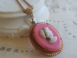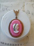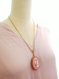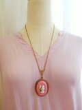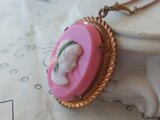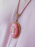 1960年代頃Germanヴィンテージ、約40×30㎜ほどの大きなピンク色のLadyカメオでお作りしましたネックレスです。