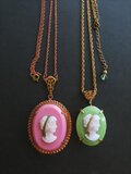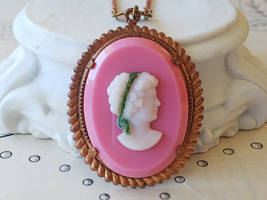 ピンク色のGlassの上には、白いGlassのLadyカメオ。