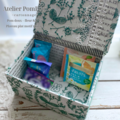 刺繍入りの布とレース調の内布で仕立てた、ふっくら柔らかな雰囲気のカルトナージュボックスです𓍯