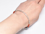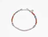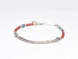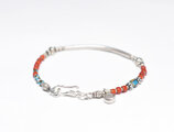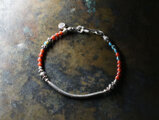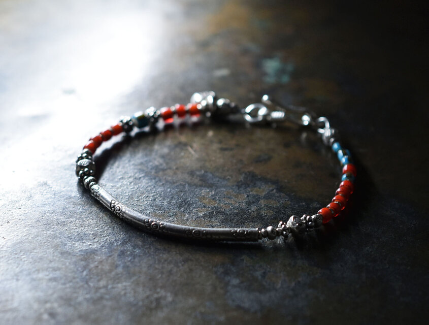 湾曲カレンシルバーと飴色&縞模様ターコイズブルーホワイトハーツの華奢なブレス